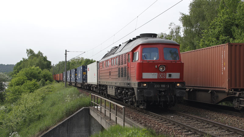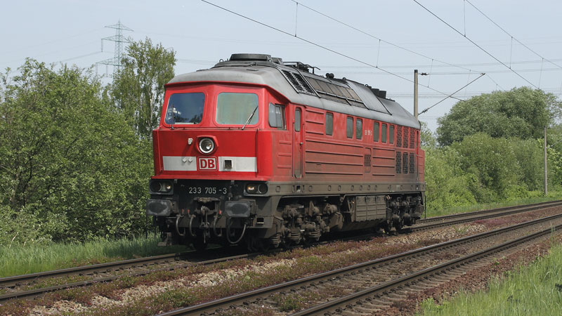 gleichzeitig kam die Ludmilla 233 705-3 mit einem Containerzug herein. Hamburg Moorburg, 16. Mai 2008 |