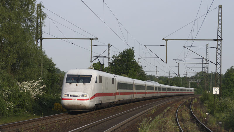 Anfang einer langen Tour in den Süden war der ICE-Triebzug 074 zu sehen. Ashausen, 16. Mai 2008 |