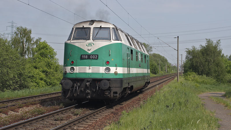 | Nachdem die "dicke Babelsbergerin" 118 002 der ITL ihren Öler in Hohe Schaar abgeliefert hatte, fuhr sie nun nach Waltershof, um dort ihren Containerzug abzuholen. Hamburg Moorburg, 16. Mai 2008 | ||
