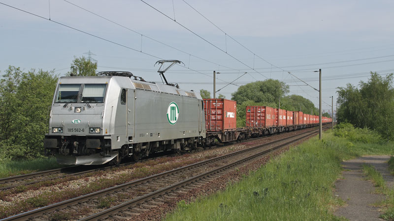 einem artreinen Containerzug war die ITL 185 562-6 beschäftigt. Hamburg Moorburg, 16. Mai 2008 |