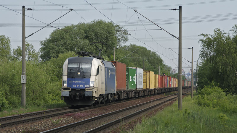 Hamburg Waltershof fuhr dieser Containerzug mit der boxXpress.de ES 64