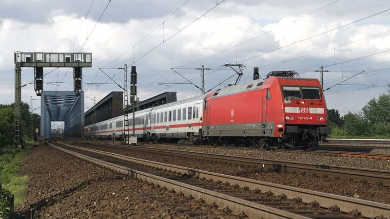 weiterer InterCity mit der 101 123-8. Hamburg Süderelbbrücken, 18. Mai 2008 |