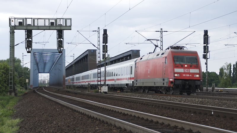101 139-4 eilte mit ihrem InterCity gen Südwesten. Hamburg Süderelbbrücken, 18. Mai 2008 |