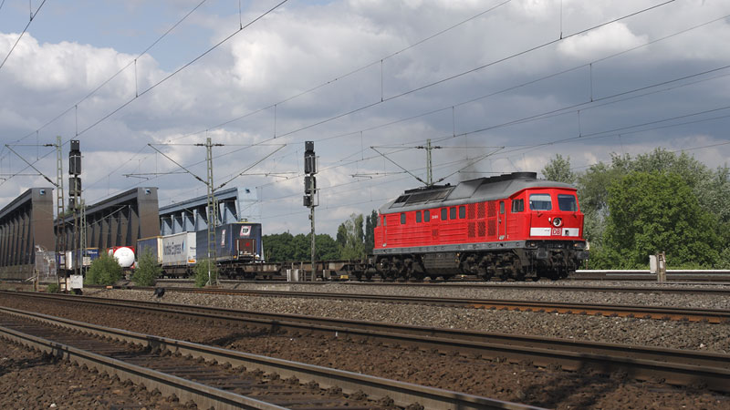 "Dampf kochend" fuhr die 233 458-9 mit ihrem KLV-Zug gen Maschen. Hamburg Süderelbbrücken, 18. Mai 2008 |