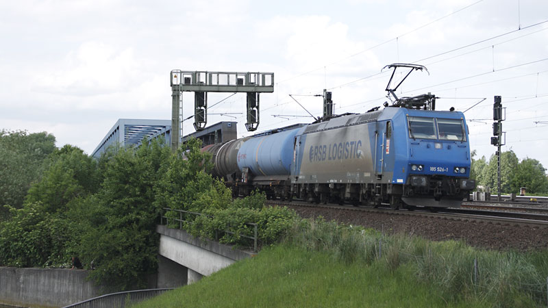 Öler hatte die HGK 185 526-1 mit der RSB LOGISTIC-Beschriftung am Haken. Hamburg Süderelbbrücken, 18. Mai 2008 |