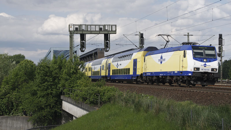 ME 146-04 mit dem metronom nach Bremen. Hamburg Süderelbbrücken, 18. Mai 2008 |