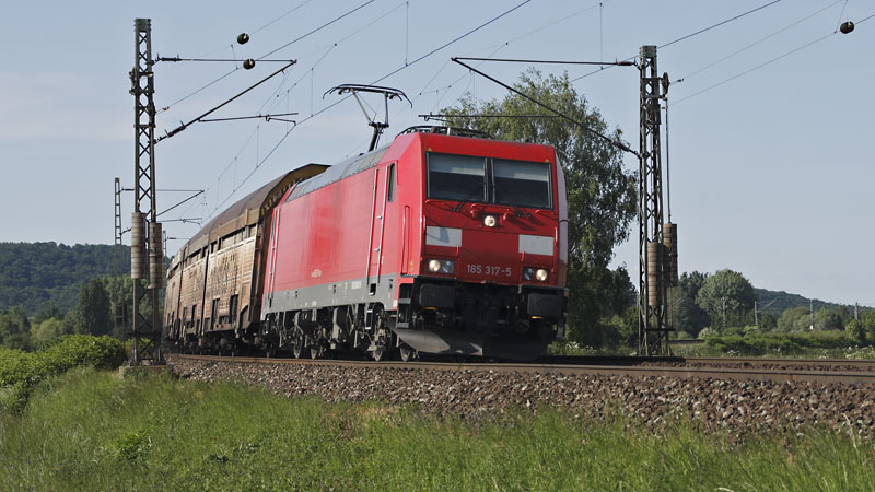 noch "Eigentümerlose" 185 317-5 mit einem CarRail-Logistics-Zug. Burgstemmen, 24. Mai 2008 |