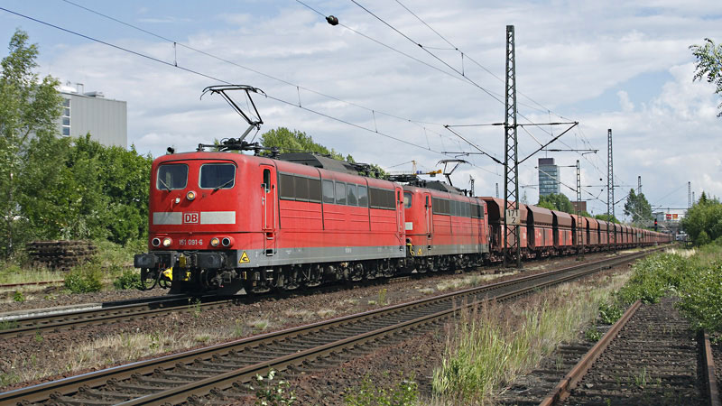 einem Erzleerpark von Salzgitter Beddingen polterten 151 091-6 und 151