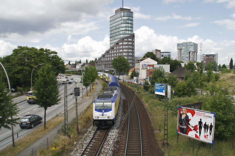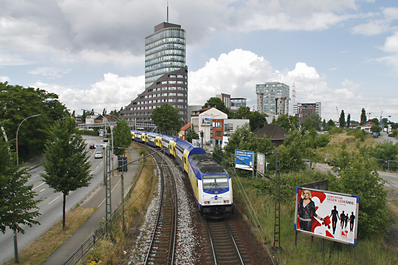 metronom nach Cuxhaven mit der 246 004-6. Hamburg Unterelbe, 16. Juni 2008 |
