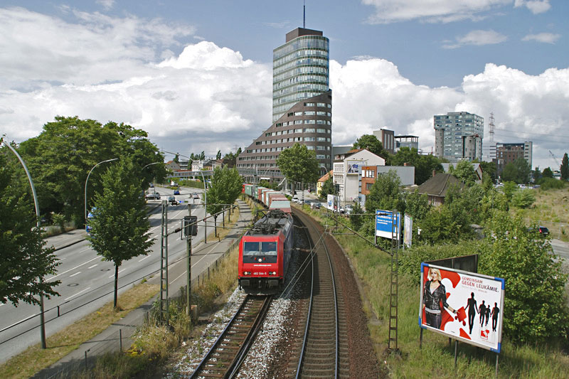 Maschen kam die 185 228-4, als sie in Richtung Waltershof fuhr. Hamburg Unterelbe, 16. Juni 2008 |