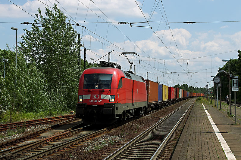 samstägliche 182-Stammleistung hatte die 182 011-7 intus. Winsen, 21. Juni 2008 |