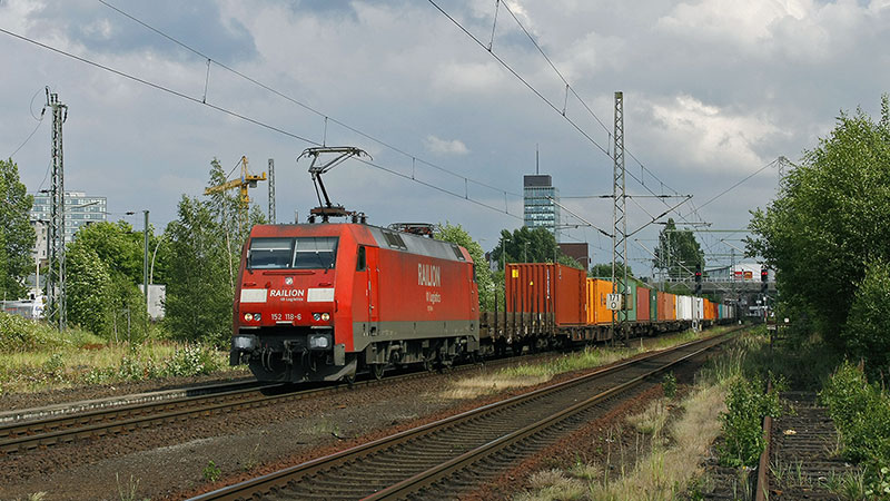 152 118-6 rumpelte auch mit ihrem Containerzug in den Hafen bei Hamburg