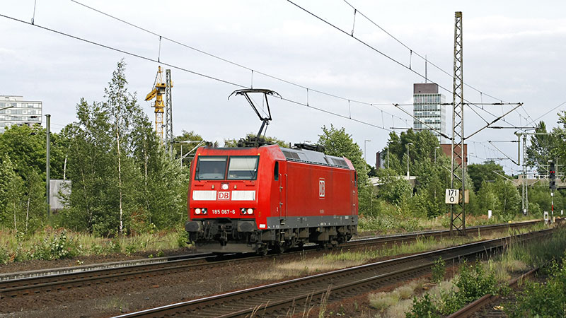 die 185 067-6 kam schon wieder Lz zurück. Hamburg Unterelbe, 28. Juni 2008 |
