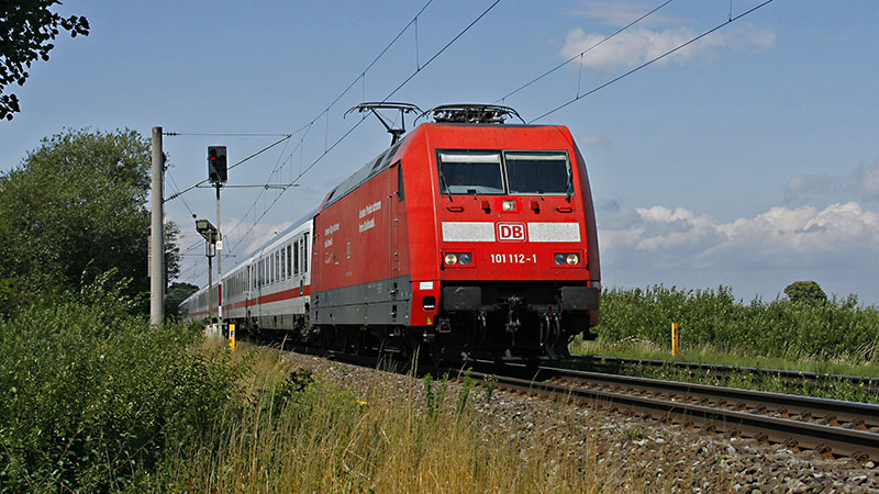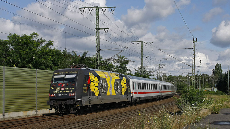 101 112-1 donnerte mit ihrem IC über Braunschweig in den Osten. Ramhorst, 12. Juli 2008 |