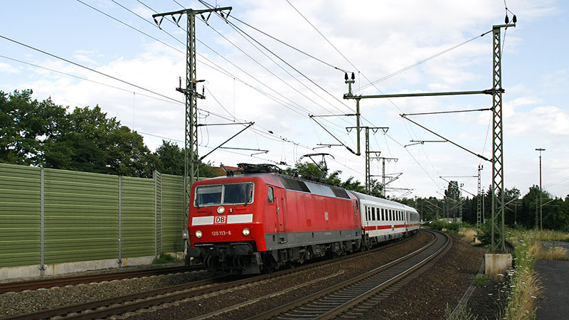 120 113-6 mit ihrem InterCity nach Berlin. Lehrte, 12. Juli 2008 |