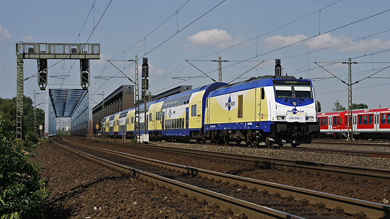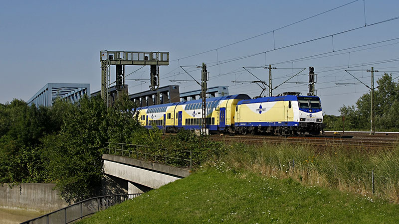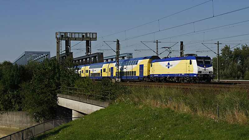 metronom nach Uelzen mit der 146 531-9. Hamburg Süderelbbrücken, 27. Juli 2008 |