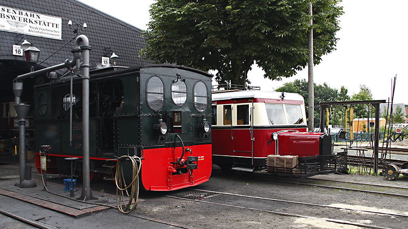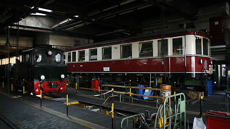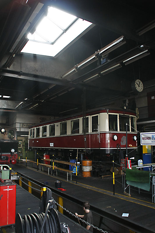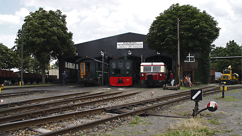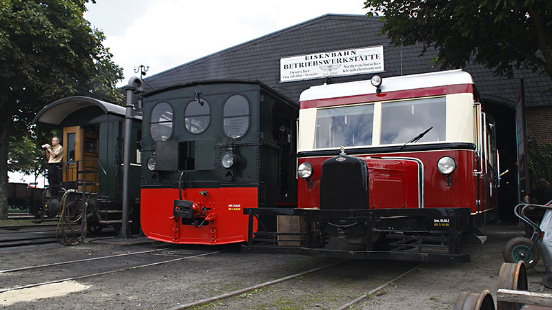 Schuppen stand der Triebwagen T42 aufgebockt, davor die "Spreewald". Bruchhausen-Vilsen, 2. August 2008 |