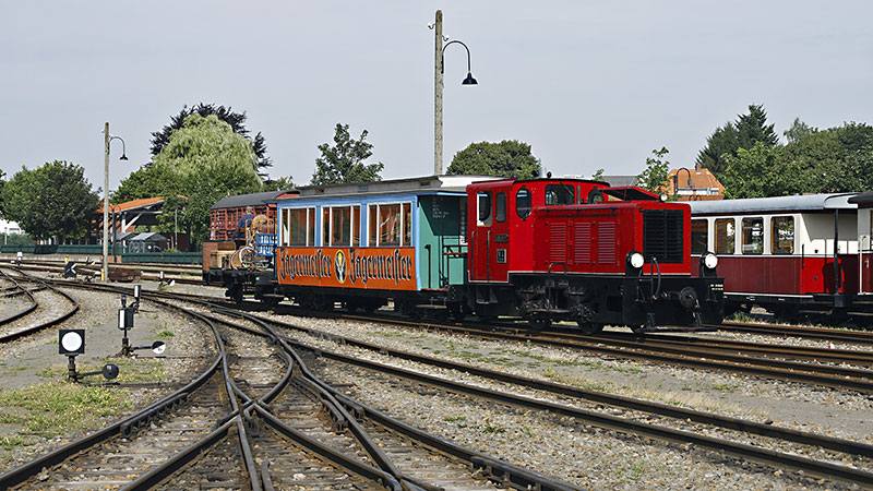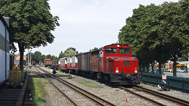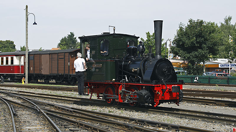 Tramwaylok "Plettenberg" rangierte mit ihren zwei Wagen. Bruchhausen-Vilsen, 2. August 2008 |