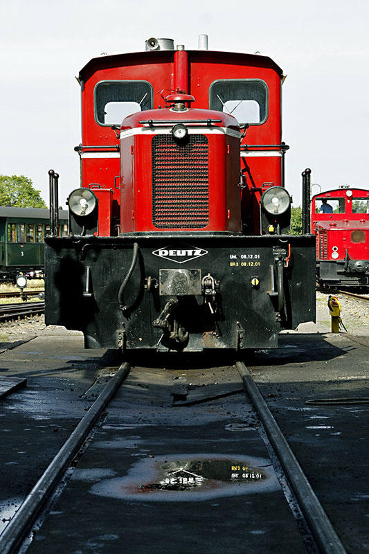 urige Deutz-Diesellok V3 und ihr "Spiegelbildchen". Bruchhausen-Vilsen, 2. August 2008 |