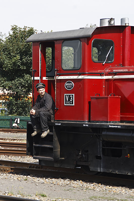 V29 hat drei (!) Dieselmotoren – voll konzentriert guckt ihr Lokführer