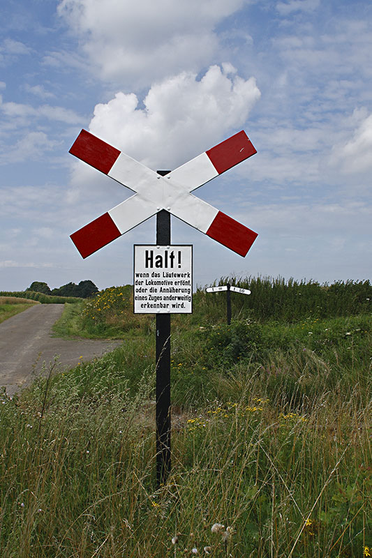 Ortsausgang passierte T2 auf dem Weg nach Syke einen der vielen BÜ's. Bruchhausen-Vilsen, 2. August 2008 |