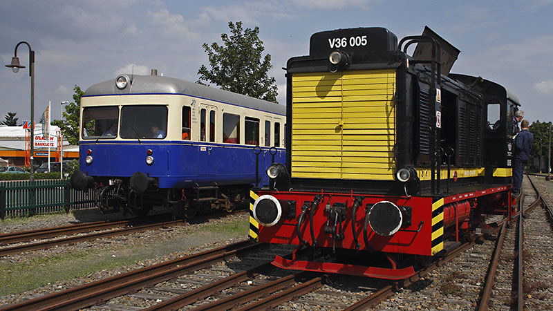 V36 005 war am rangieren – daneben stand der Esslinger Tw T2. Bruchhausen-Vilsen, 2. August 2008 |