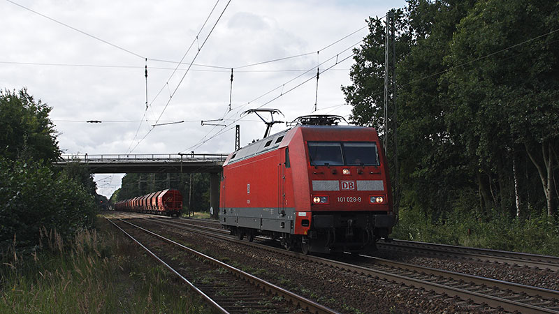 Kesselwagen kesselte die 155 101-9 gen Süden. Radbruch, 29. August 2008 |