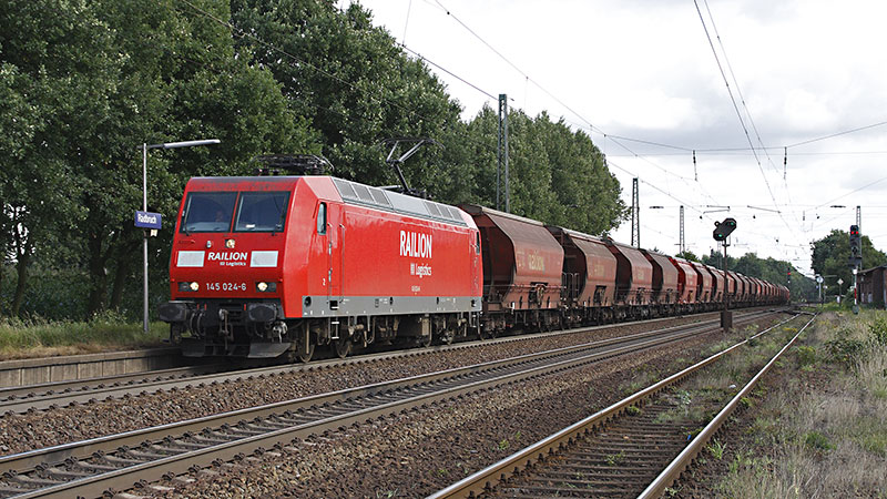 die 145 024-6 hatte die Last mit den Düngemitteln. Radbruch, 29. August 2008 |