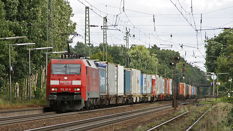 mehr Stahlkisten für den Hamburger Hafen hatte die 152 117-8. Radbruch, 29. August 2008 |