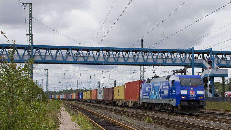 Container am laufenden Band – auch die 185 222-7 hatte welche am Haken. Radbruch, 29. August 2008 |