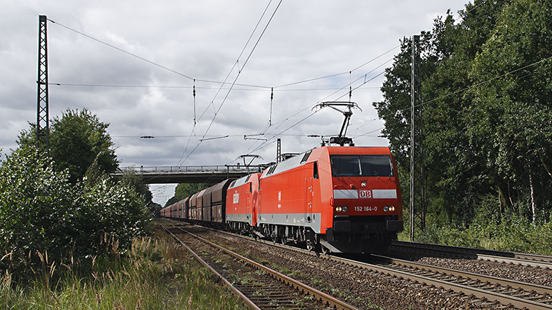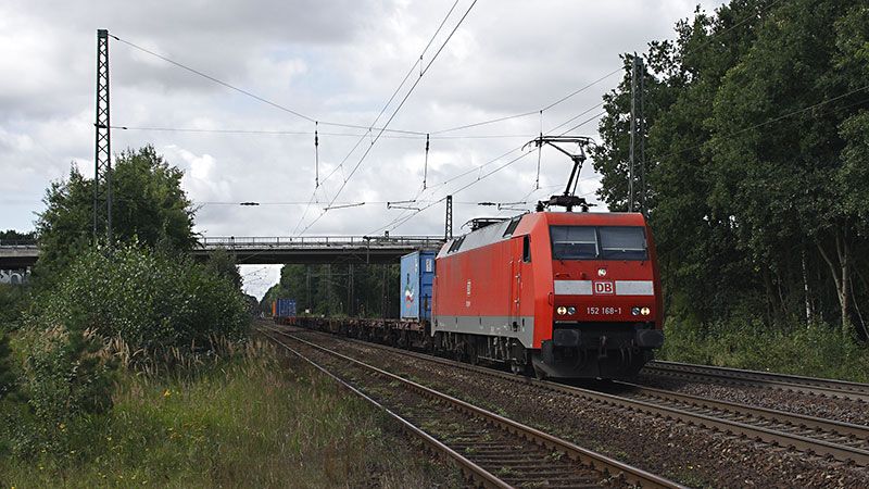 wenigen Containern im Rücken fuhr die 152 168-1 gen Süden. Radbruch, 29. August 2008 |