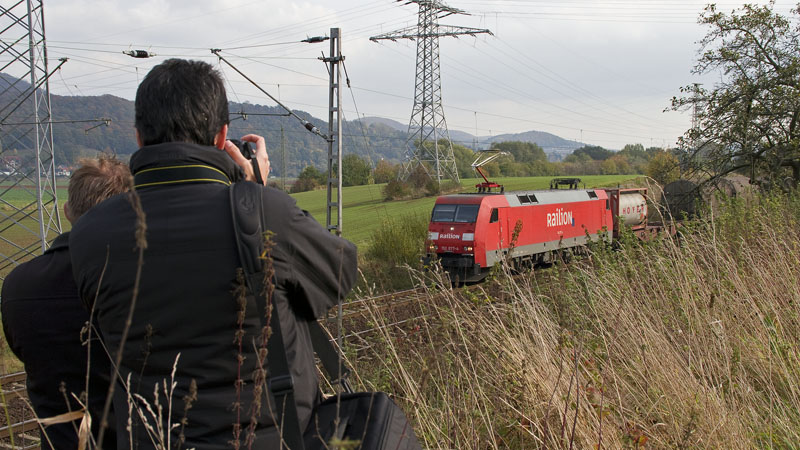 erwischt wurden die beiden Fotografen und die 152 077-4 mit ihrem Zug. Limmer (Leine), 18. Oktober 2008 |