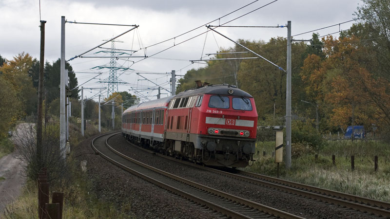 Gegenzug nach Ahrensburg(Bad Oldesloe mit der 218 349-9. Tunneltal – BÜ Brauner Hirsch, 31. Oktober 2008 |