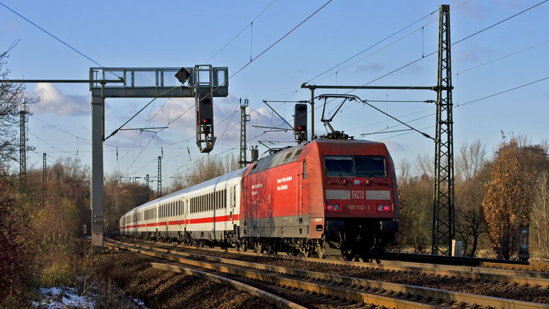 war die 101 112-1 mit dem IC nach Hamburg zu sehen. Ashausen, 25. November 2008 |