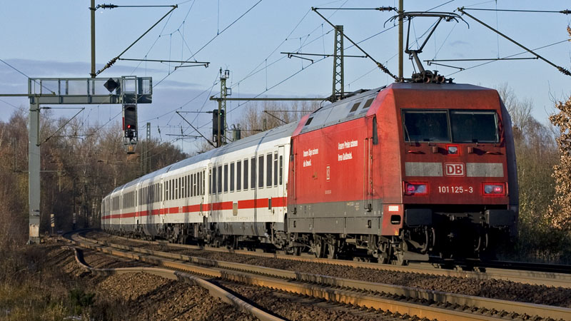 101 125-3 schob mit Karacho ihren InterCity nach Hamburg. Ashausen, 25. November 2008 |