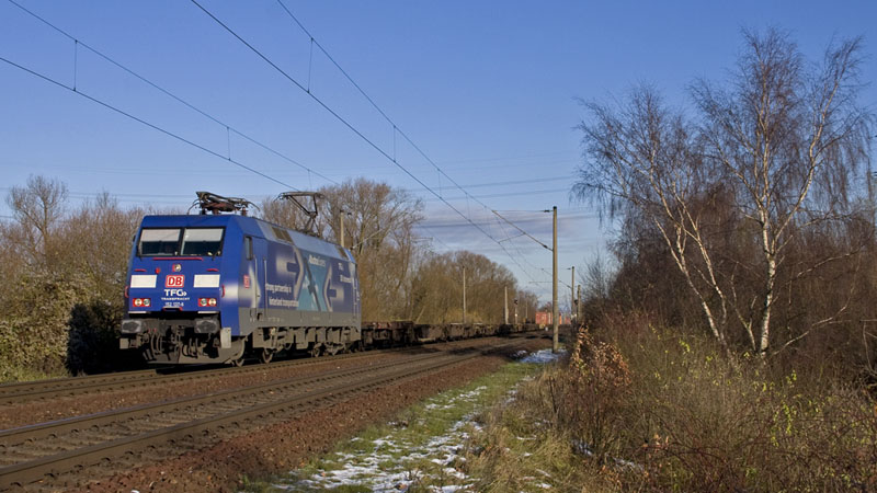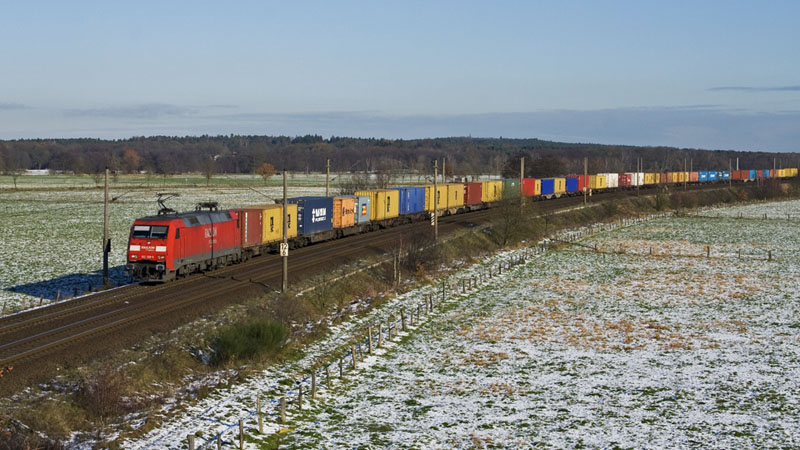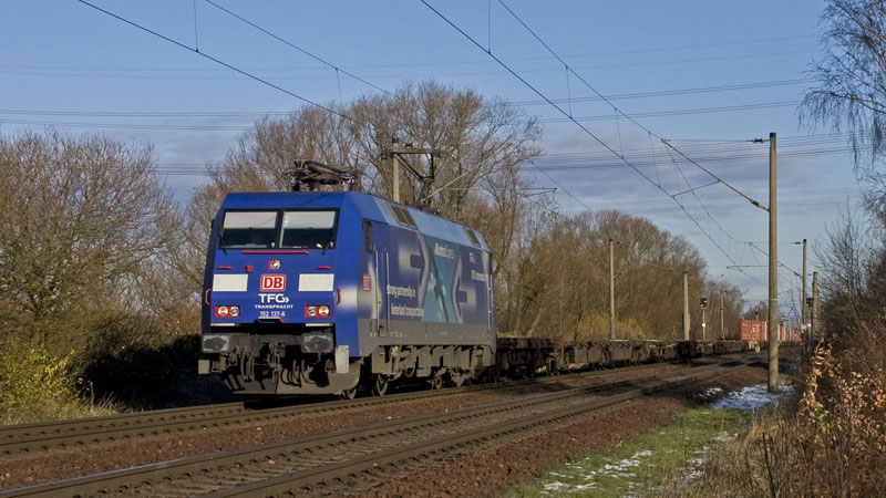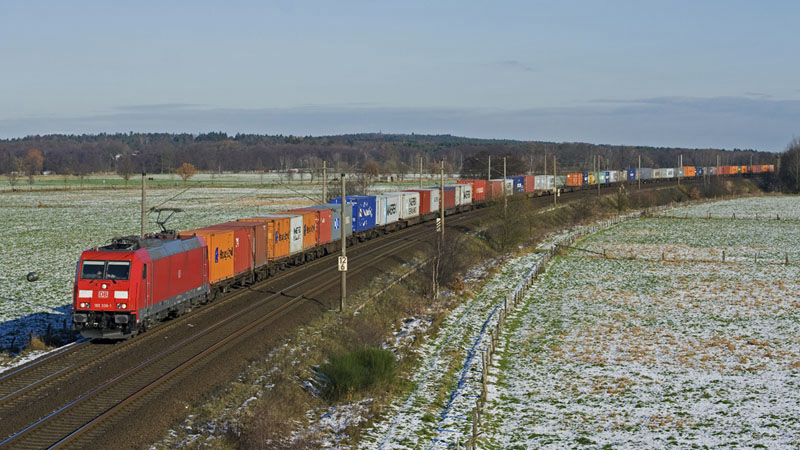 einem Containerzug rollte die 145 065-9 über die "Einflugschneise"