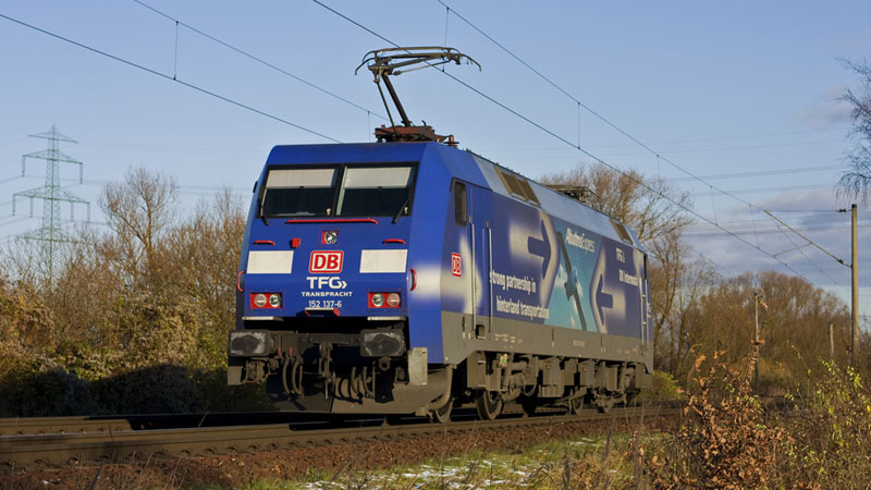 schöne TFG Transfracht-Werbelok 152 137-6 im Anflug auf Hamburg