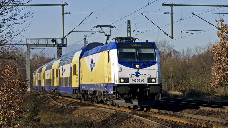 Nahverkehr nach Lüneburg als metronom Regional mit der 146 534-3. Ashausen, 25. November 2008 |