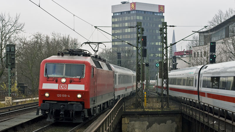 120 109-4 fuhr mit dem IC 2320 ein – diese Leistung hatte bis vor kurzem