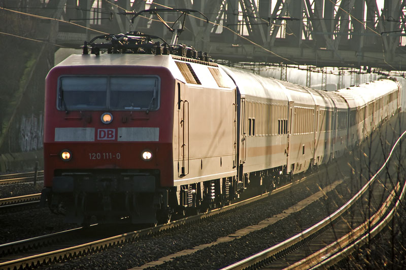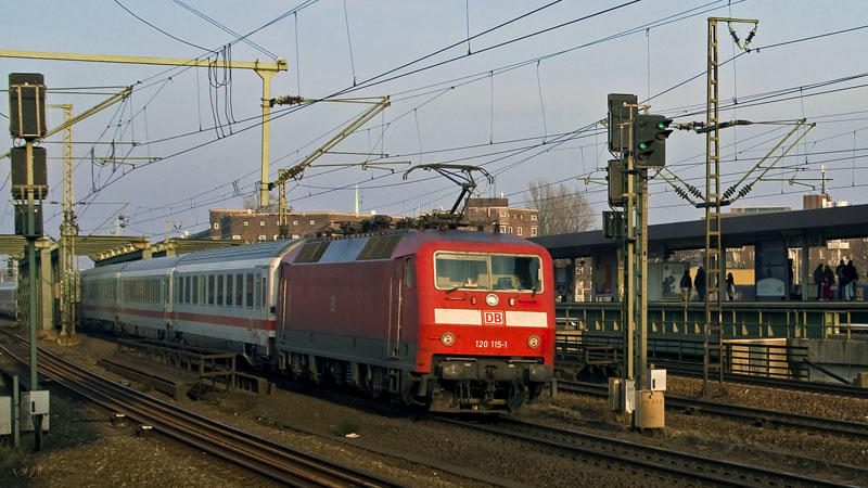 120 115-1 durfte diesen IC anschieben. Hamburg-Veddel, 14. Dezember 2008 |