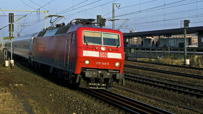 einem InterCity über die Elbinsel Veddel donnerte die 120 146-6