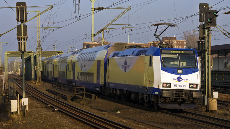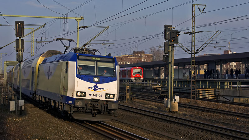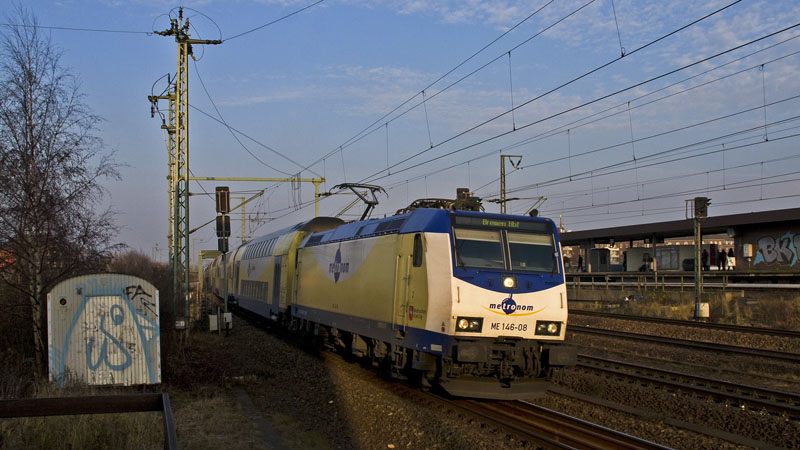 schnelle metronom nach Bremen mit der ME 146-08. Hamburg-Veddel, 14. Dezember 2008 |
