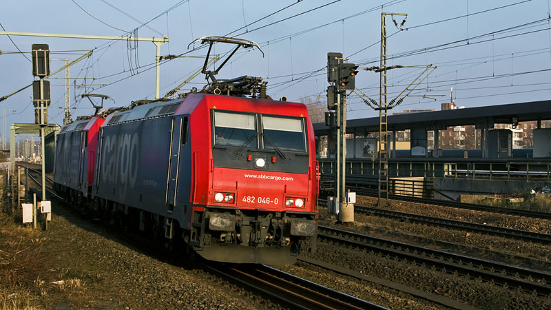 kamen die beiden SBB Cargo-Loks 482 046-0 und 482 045-2 von Hamburg-Langenfelde. Hamburg-Veddel, 14. Dezember 2008 |