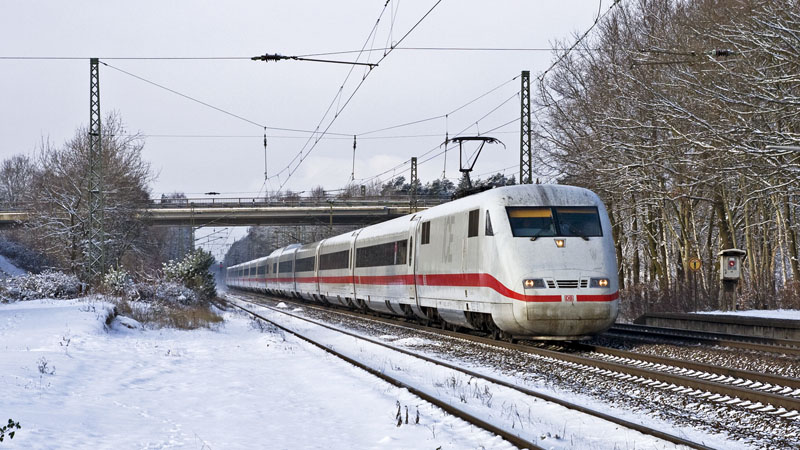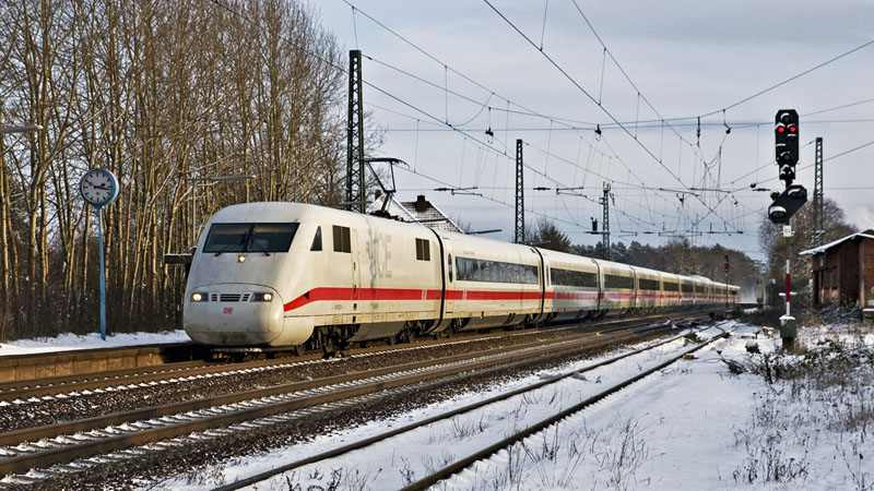 | Der InterCity Express auf dem Weg nach Hannover mit dem Triebzug 173. Radbruch, 2. Januar 2010 |