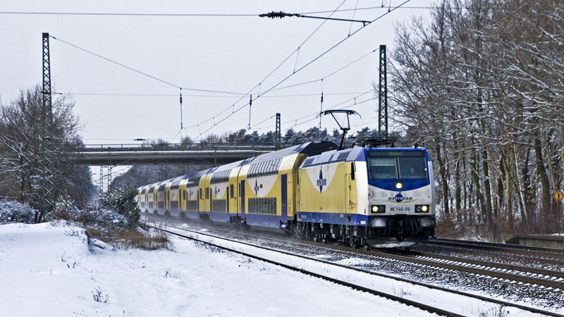 | Der schnelle achtteilige metronom nach Uelzen mit der ME 146-06. Radbruch, 2. Januar 2010 |
