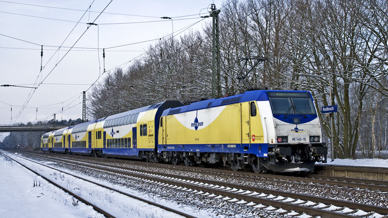 | Die Göttinger Stammloks sind zur Zeit im Hamburger Raum aktiv, so wie ME 146-18 mit einem MEr nach Lüneburg. Radbruch, 2. Januar 2010 |