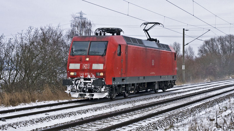 | Wenig später rollte die Schwesterlok 145 072-5 ebenso Lz heraus. Hamburg-Moorburg, 6. Januar 2010 |