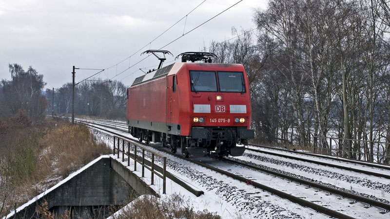 | Nun kam die 145 075-8 mit ihrem Containerzug heraus. Hamburg-Moorburg, 6. Januar 2010 |