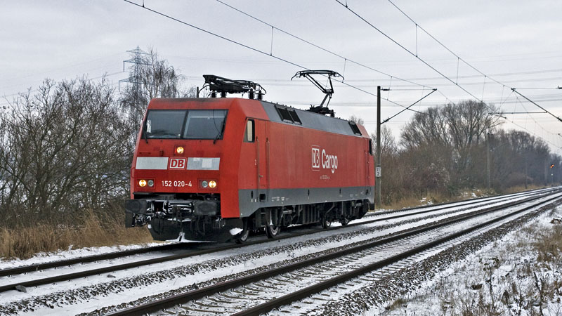 | 152er am laufenden Band – nun kam die 152 020-4 mit Containern herein. Hamburg-Moorburg, 6. Januar 2010 |