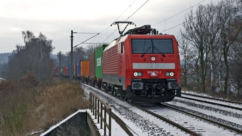 | Mit einem Containerzug aus der Tschechei kam die 189 015-1 in den Hafen herein. Hamburg-Moorburg, 6. Januar 2010 |